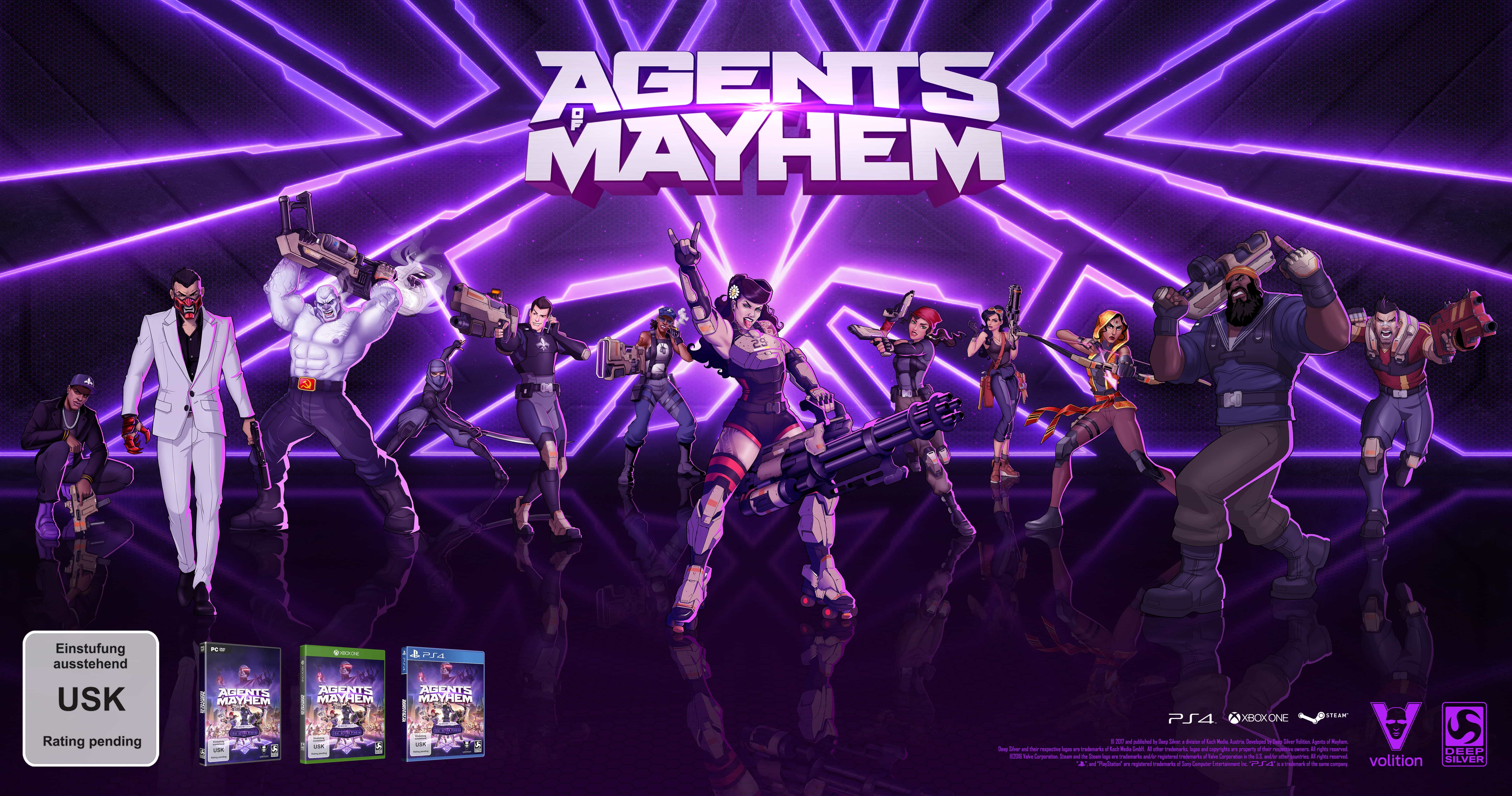 Agents of Mayhem ist ein Open-World-, Third-Person-Actionspiel für die PlayStation®4, Xbox One, und den PC. Die Veröffentlichung ist am 15. August in den USA und am 18. August im Rest der Welt. Deep Silver feiert mit Agents of Mayhem dem kommenden Action-RPG der Saints-Row-Entwickler von Volition die Kultur der 80er und 90er Jahre TV-Unterhaltung. Auf einzigartige Weise verbindet der Titel (Anti-)Heldenverehrung, derben Humor, Comic-Look und Action in einem Paket, das kein Auge trocken lässt.